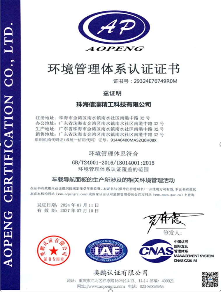 环境管理体系认证证书